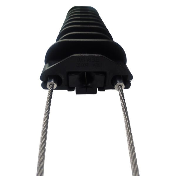 The body of the clamp loop is molded plastic and polymer wedges and made up of hot-dip galvanized steel wire.