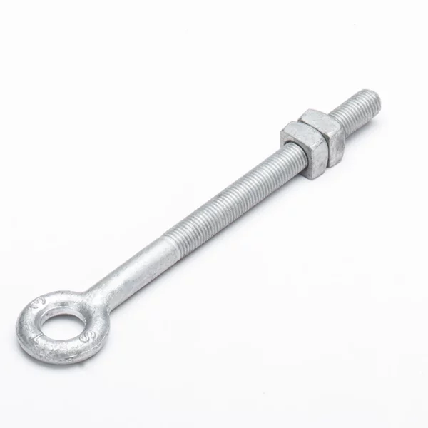 Forged eye bolt is a type of fastener widely used on the wooden pole to support thimbles, clevises, links, and dead end insulators in electric power lines or overhead lines. It is also called a drop forged eye bolt. The eye bolt is assembled with one or more square nuts, which fasten the eye bolt when going across the wooden pole. Forged Eye Bolts include oval eye bolts and round eye bolts.