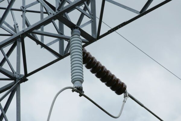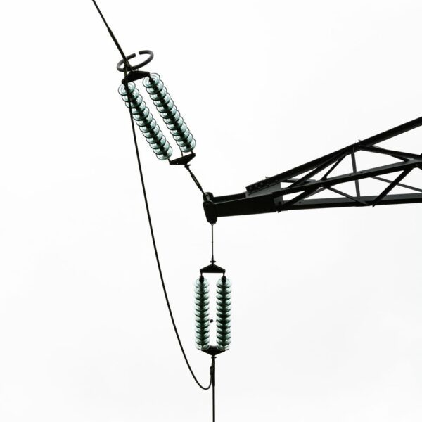 The single “I” composite insulator, long rod type, of sufficient mechanical capacity is used for the outer phases, and a “V” insulator set for the middle phase.