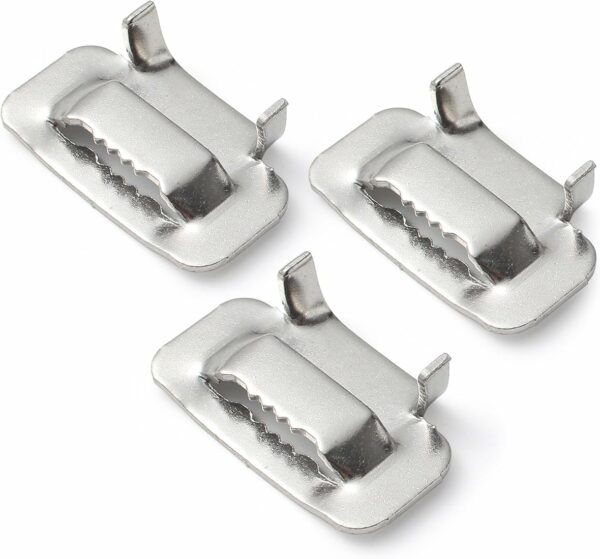 - Stainless steel banding buckle offers excellent resistance to corrosion compared to its counterpart plastic banding