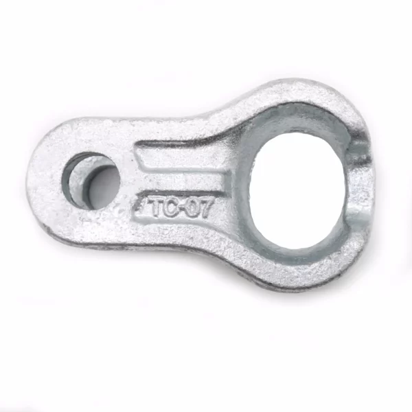 The thimble clevis is hot-dip galvanized casting iron or formed steel thimble with many kinds of structures. The thimble clevis is designed with a smooth internal contour to burden the stress concentration on the guy grip loop. The complete set includes casting thimble clevis body and bolt & nut. The bolt is to lock the U clevis and ball socket when completing the installation.
