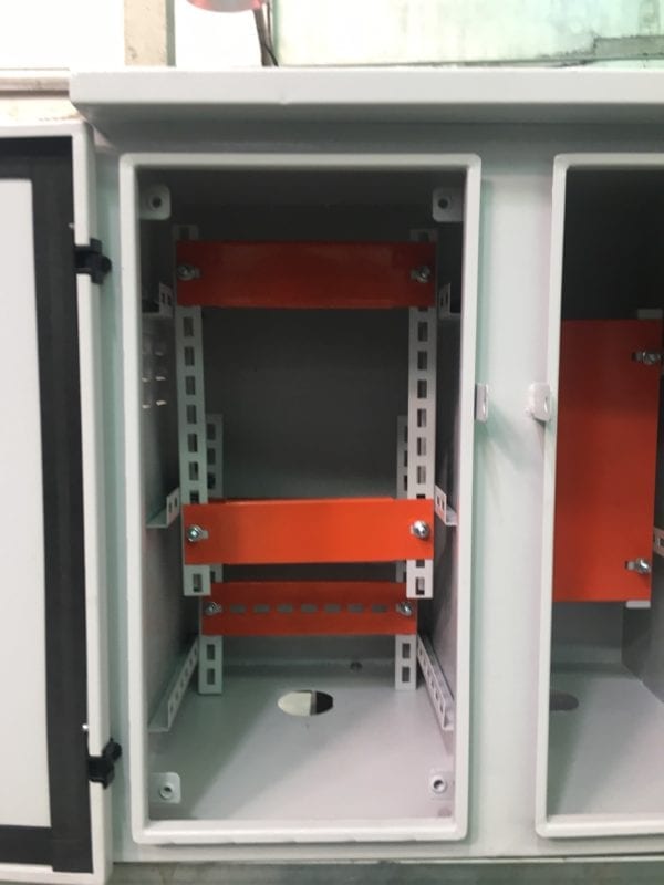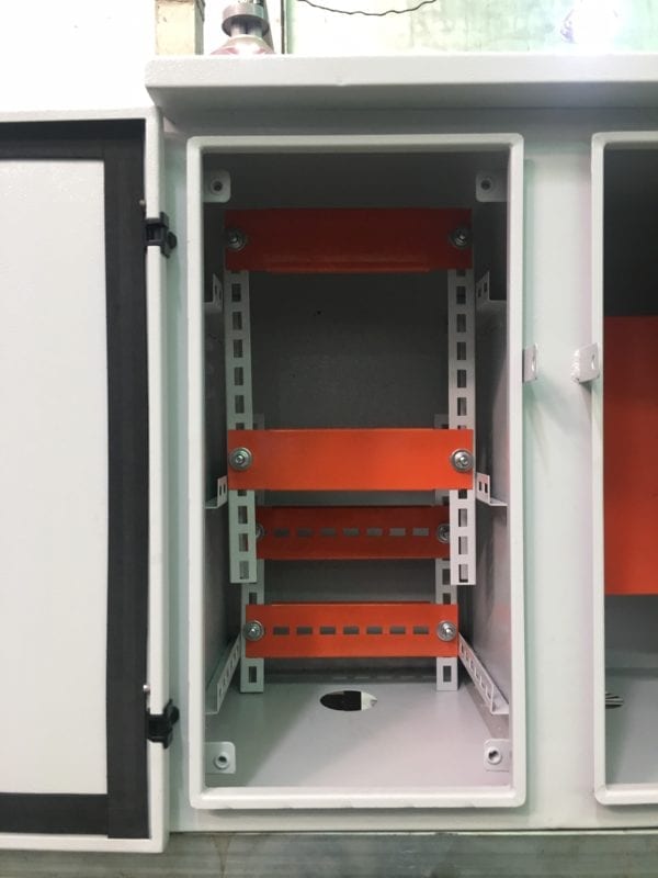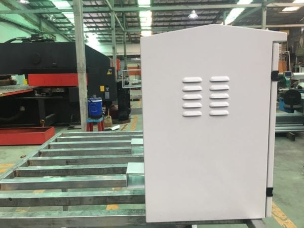 - Xử lý vỏ tủ điện: Tẩy dầu mỡ bằng dung dịch xút, Tẩy gỉ bằng dung dịch acid, Định hình bề mặt bằng hoá chất chuyên dụng, Phốt phát hóa bề mặt, Rửa nước, hong khô, Phun bột sơn tĩnh điện với màu phù hợp.